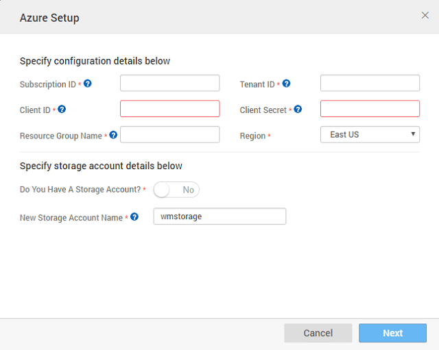- A new storage account at Azure will be created with the name you provide. Make sure you enter a unique name.
