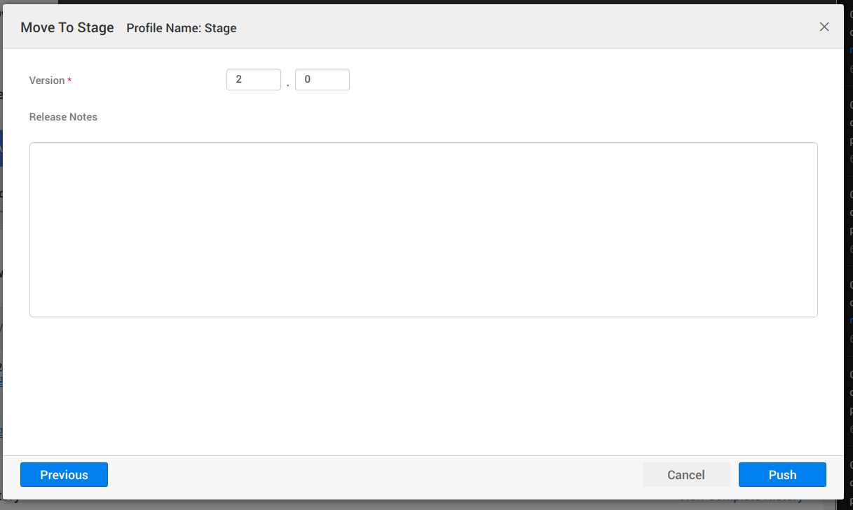 - Push the app from one phase to another without the need to modify the app. Push will deploy the app into the new deployment environment. A separate URL is generated for each phase. You can version the apps for easy tracking.