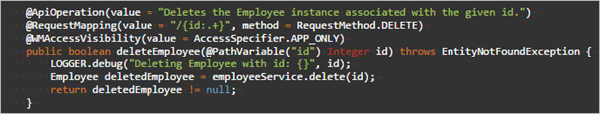 Each of the layers performs its function and delegates the call to the next layer in the chain. For example, after the unmarshaling of the JSON data to the model, and authorization checks, the REST layer delegates the call to the service layer, and more.