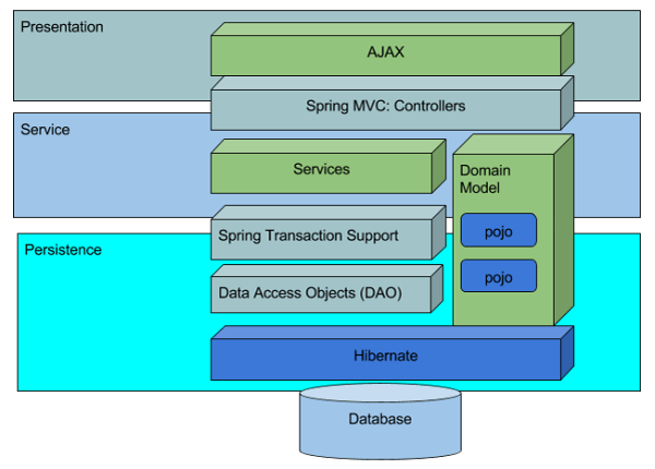 The source code is generated with the ORM, Service Layer & REST APIs with each layer having a specific responsibility: