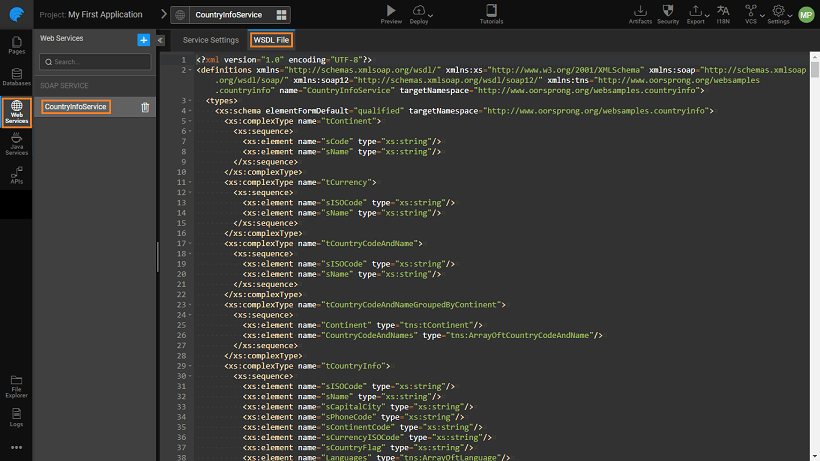 For each method defined by the SOAP service, a REST API is generated. You can view the API definition, request and response formats and even test the same before using it within the app. You can achieve all this from the API Designer.