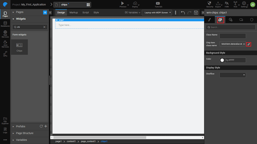 1. Drag and drop the chips widget onto the canvas.