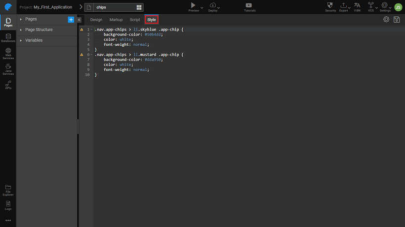7. Chip item class name property from the styles tab can be used to apply styles for individual items of the Chip: