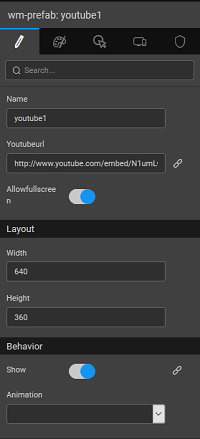 Youtube prefab ships with WaveMaker and it connects with Youtube to display a video on the web page.