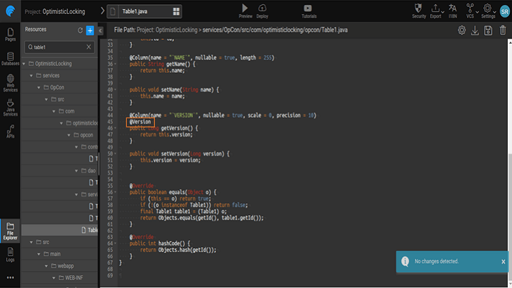 - Add @Version annotation for the version column as shown below.