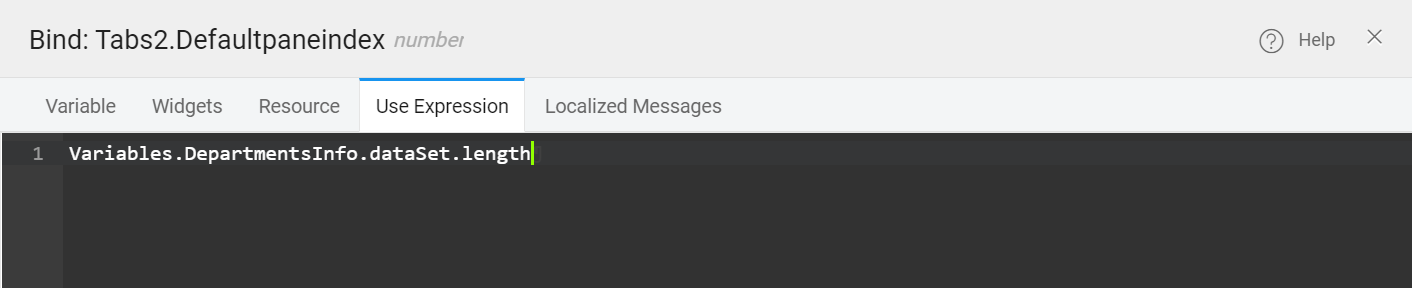 Now you can bind a dataset to the Tabs widget. Based on the dataset, a number of Tab panes are generated.