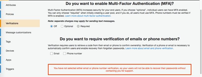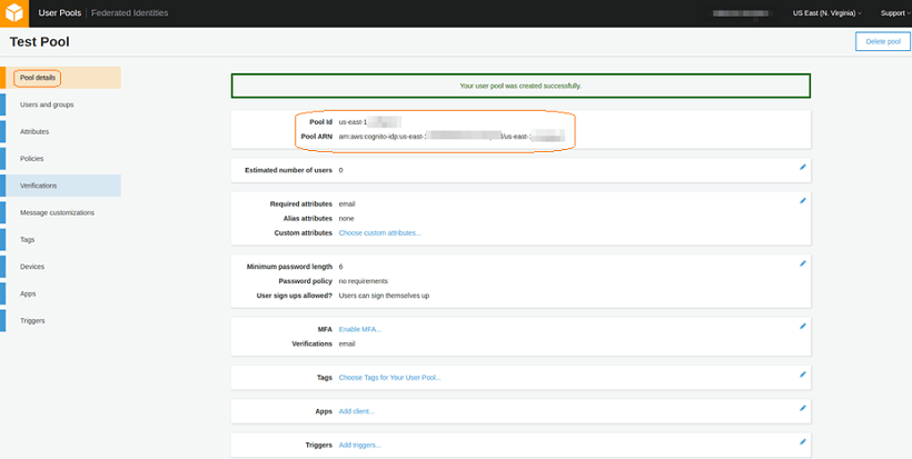 - After creating the account, Login page shows up. Verification of the user should be done by going to to the Amazon Cognito Create User Pool page and click on Users and Groups in the Left Navigation Pane. This will show you the all the Users added to the user pool.