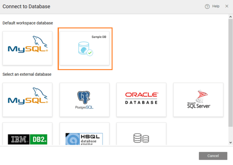 - You need to choose the Database Provider of the database being imported. For this tutorial, we will use the inbuilt sample database that ships with WaveMaker. Click sample database link.