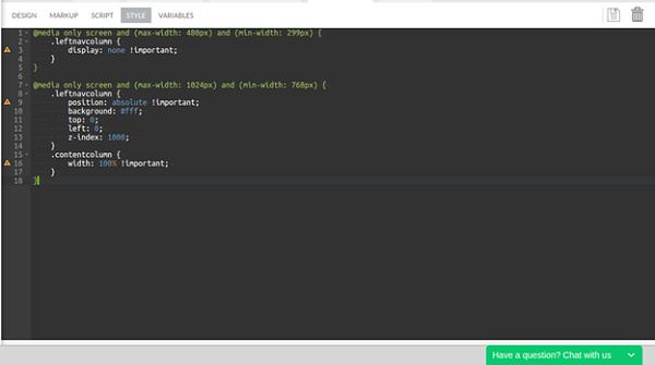 2. Open the Style tab of the Main page and write the following style snippet: