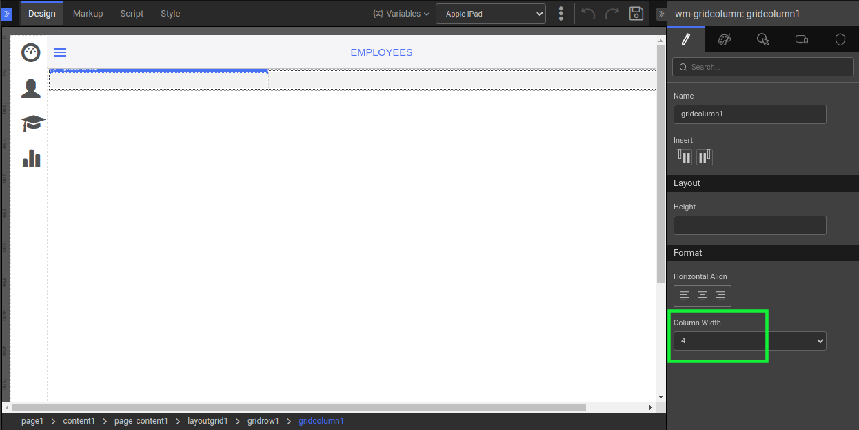 2. Drag and drop the Grid layout with two columns. Set one columnWidth to 4 and the other to 8.