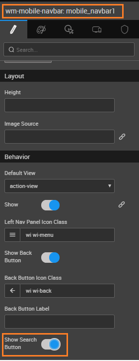 2. Select mobile navbar and set the ‘Show Search button’ from the Properties Panel.