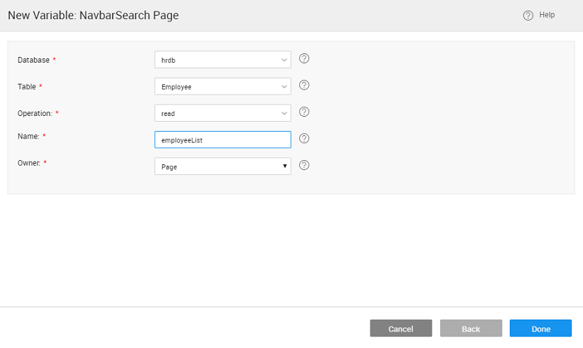 We will see how to configure the Search widget within the Navbar. We will create a list using the Employee data from sample hrdb and provide search functionality on the Employee's first name.