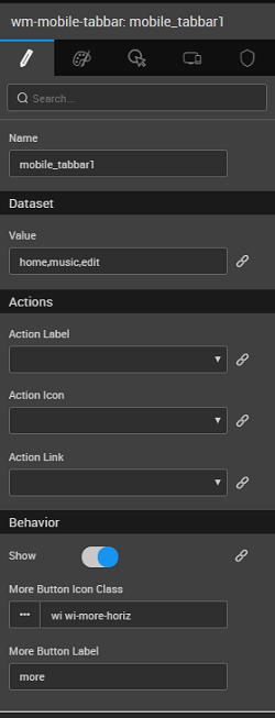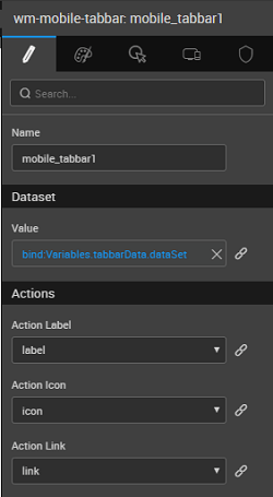 Action Link | Link for tabbar items to be picked from the fields of the Dataset Value mentioned above or bound to a variable. |