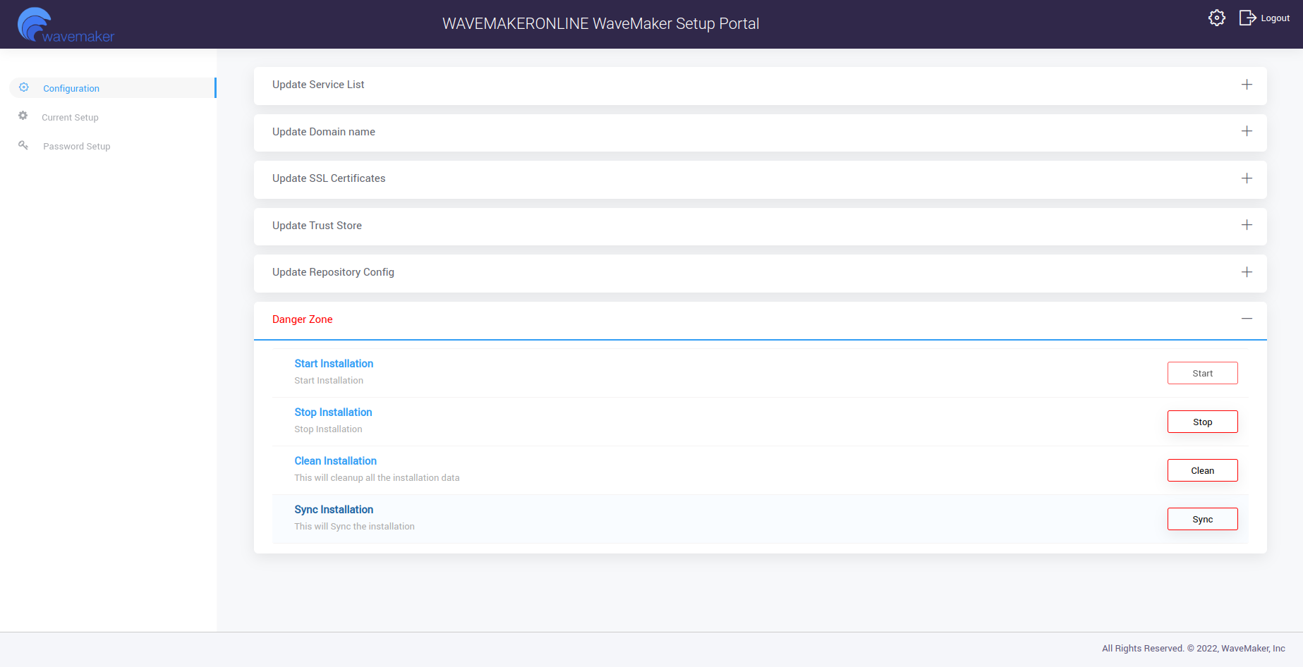 - You can stop the WME setup operation from the config wizard portal