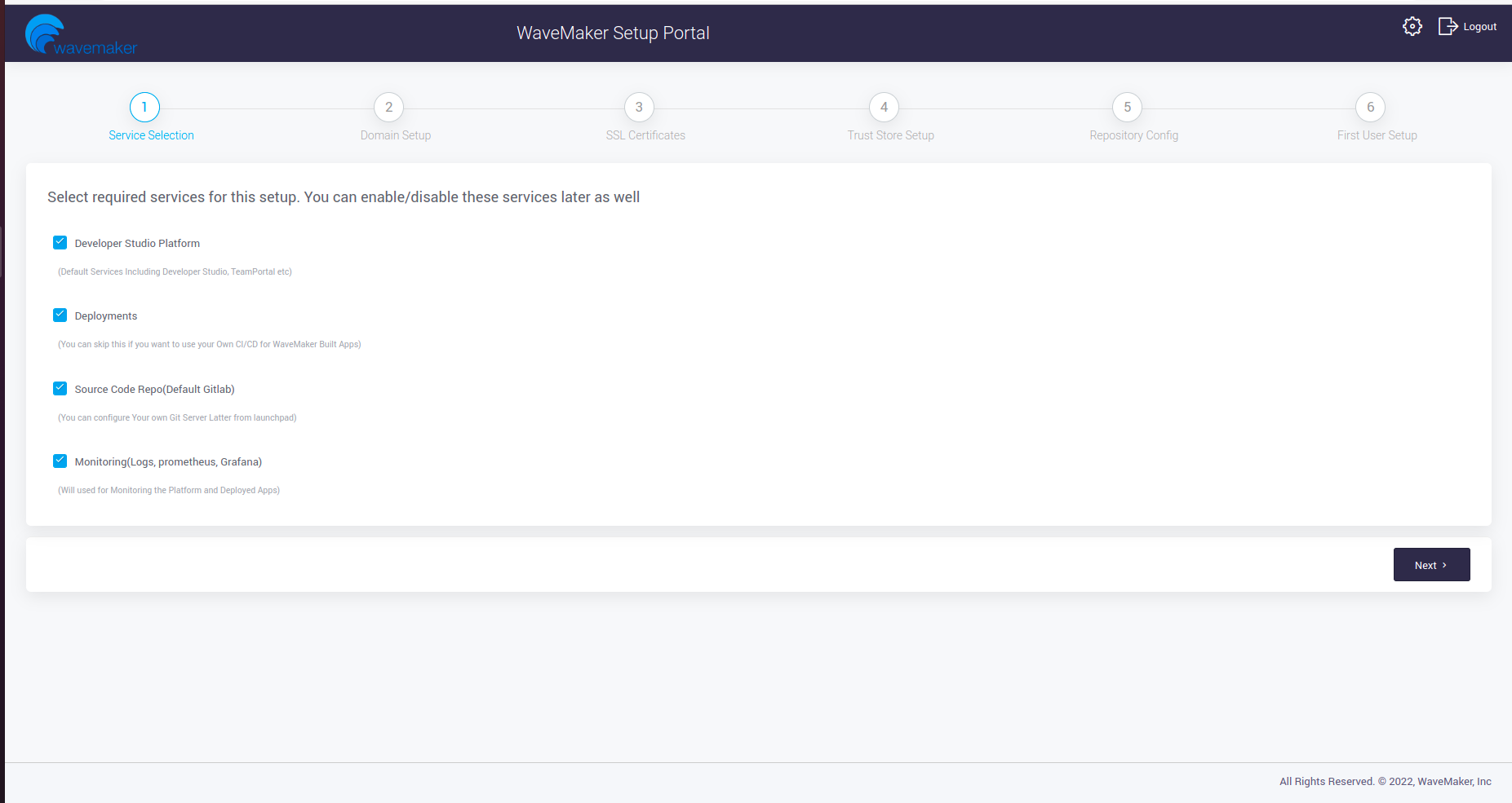 Open WaveMaker ConfigPortal by http://Platform-Instance-IP:8080