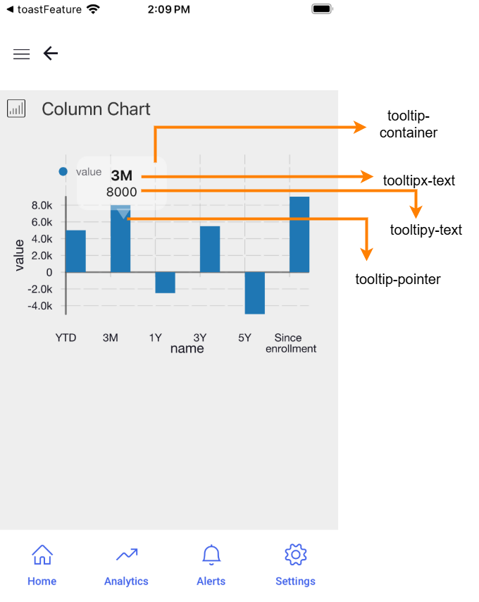 The properties to style the Tooltip pointer using the CSS class, .app-column-chart-tooltip-pointer