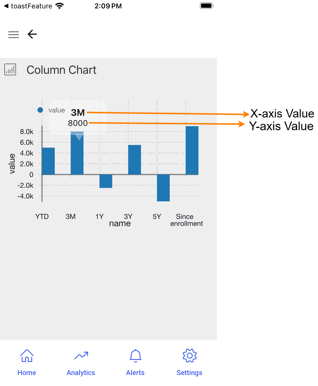 By default, we have Chart tooltip that displays the x-axis and y-axis values as shown below.