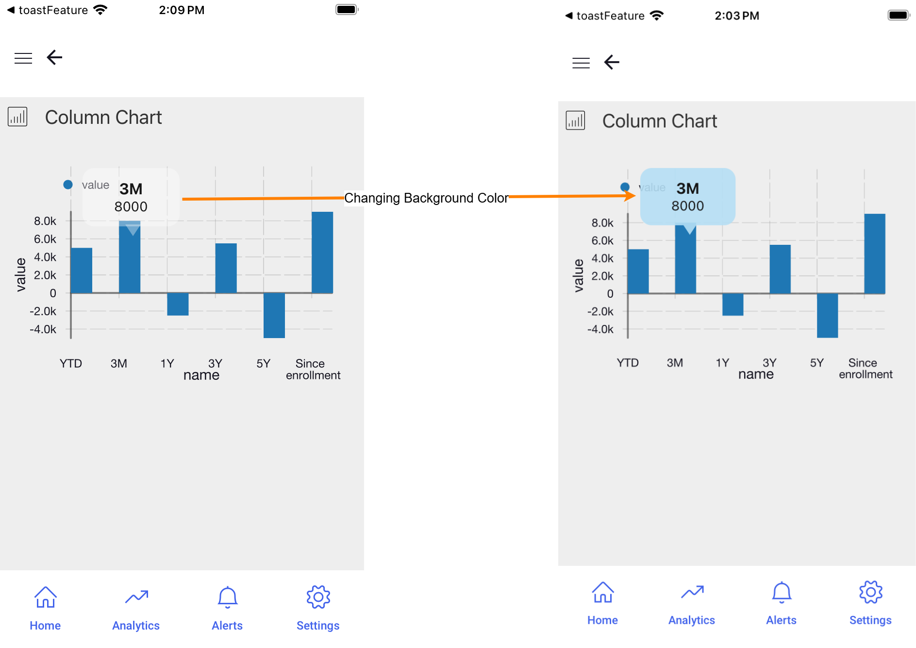 - Add the below CSS code to the Style section of the page where Chart is being used to customize the pointer of the Tooltip.