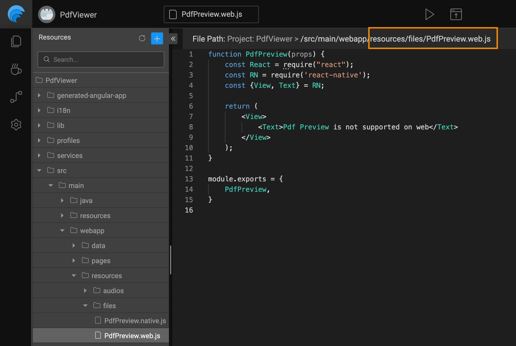 1. Add a custom file, for the native implementation of PdfPreview, e.g, PdfPreview.native.js